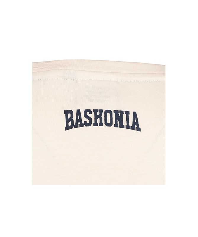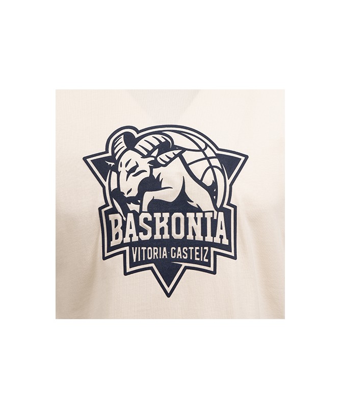 Camiseta de moda del Baskonia en color blanco con el escudo en marino en la parte delantera central.