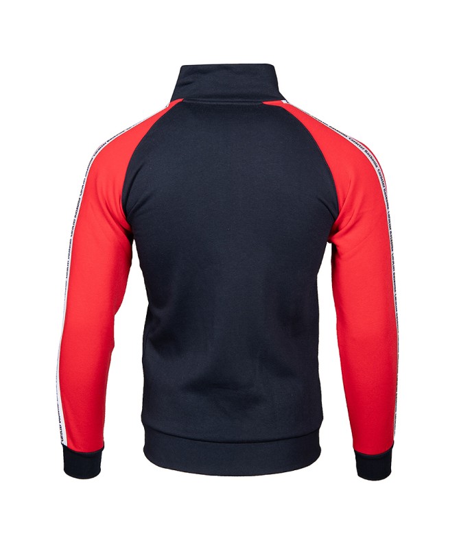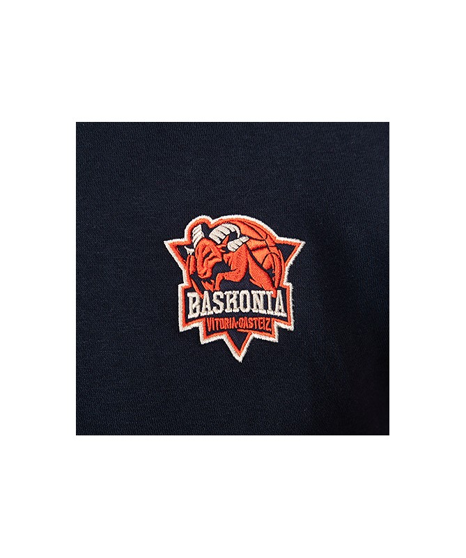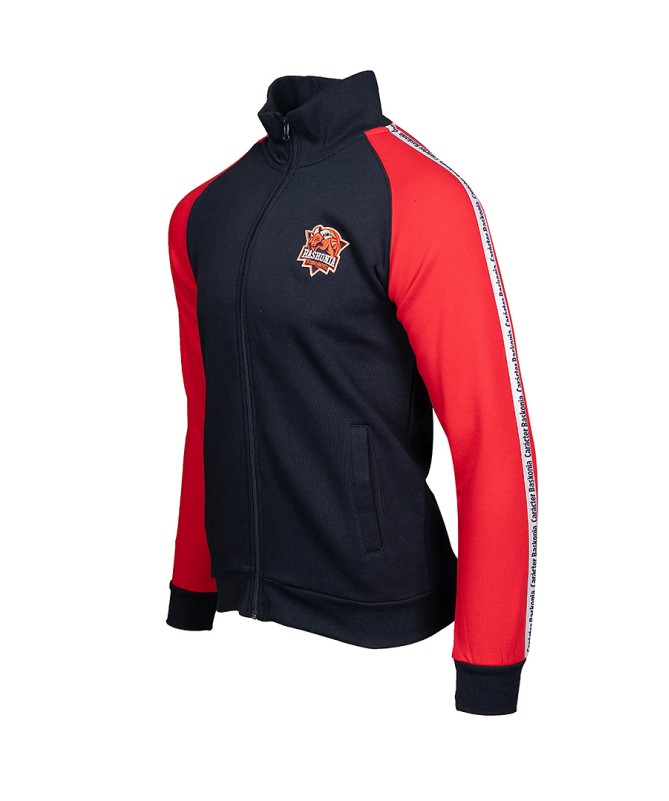 Chaqueta de moda del Baskonia con cremallera en los colores azulgranas del club y el lema ''Carácter Baskonia'' escrito en los laterales de las mangas