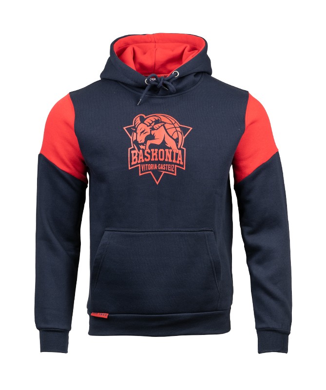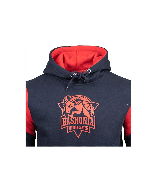 Hoodie de moda con capucha del Baskonia de color marino con detalles y el escudo en rojo en la parte delantera frontal.