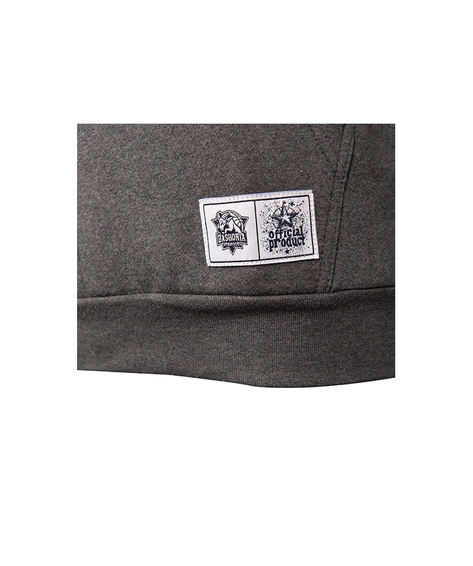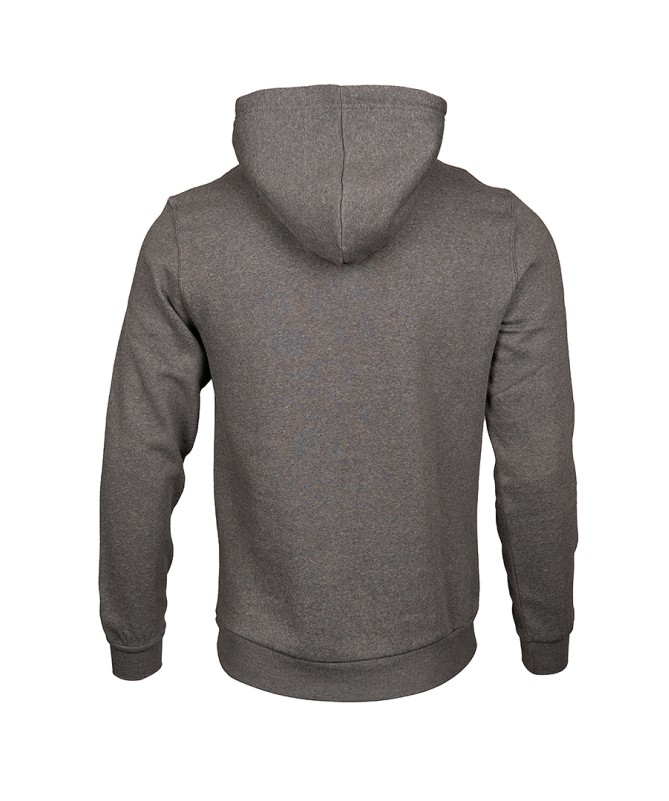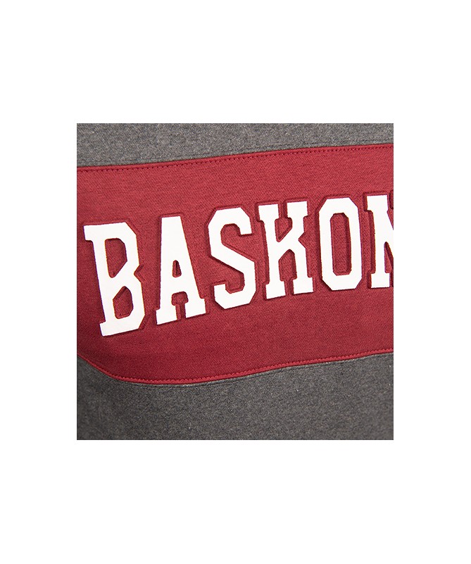 Hoodie de moda del Baskonia con capucha de color gris con una franja roja en la parte delantera donde aparece en blanco el nombre del equipo.