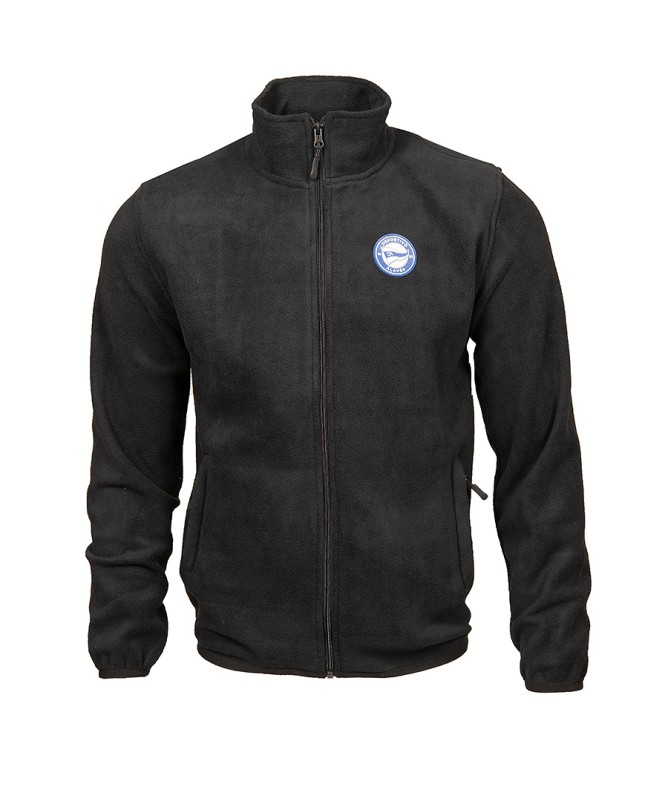 Abrigo estilo polar de color negro perteneciente a la colección de moda del Deportivo Alavés.