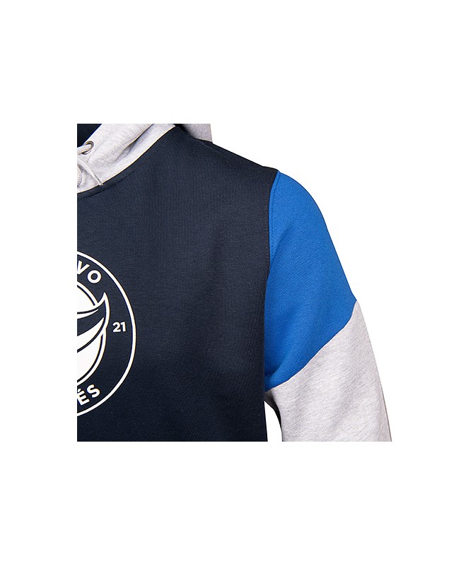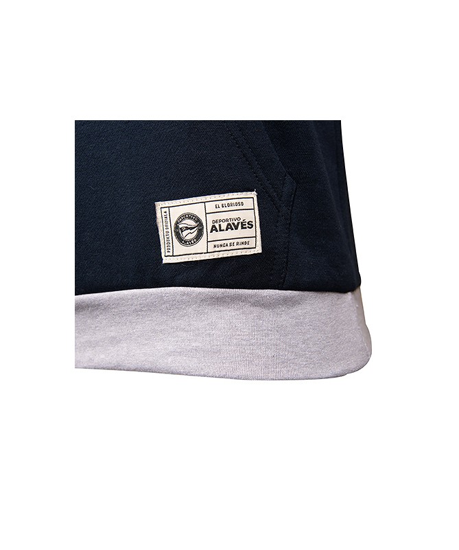 Sudadera estilo hoodie con capucha de color marino con el escudo del Deportivo Alavés en el centro y mangas de color gris.